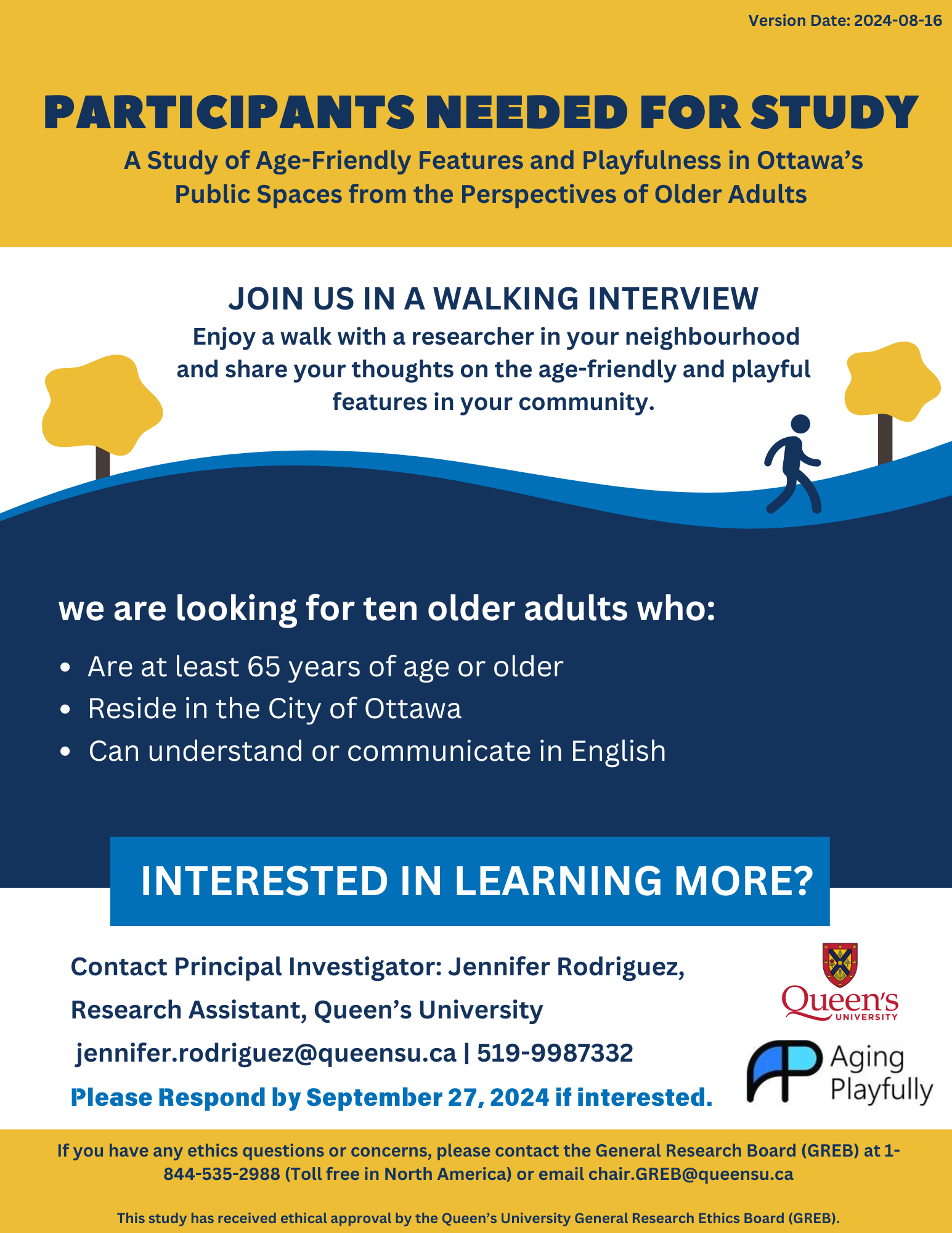 Using Ottawa as a case study, the research employed 14 walk-along interviews with participants aged 65 and above. The key research questions being addressed include: