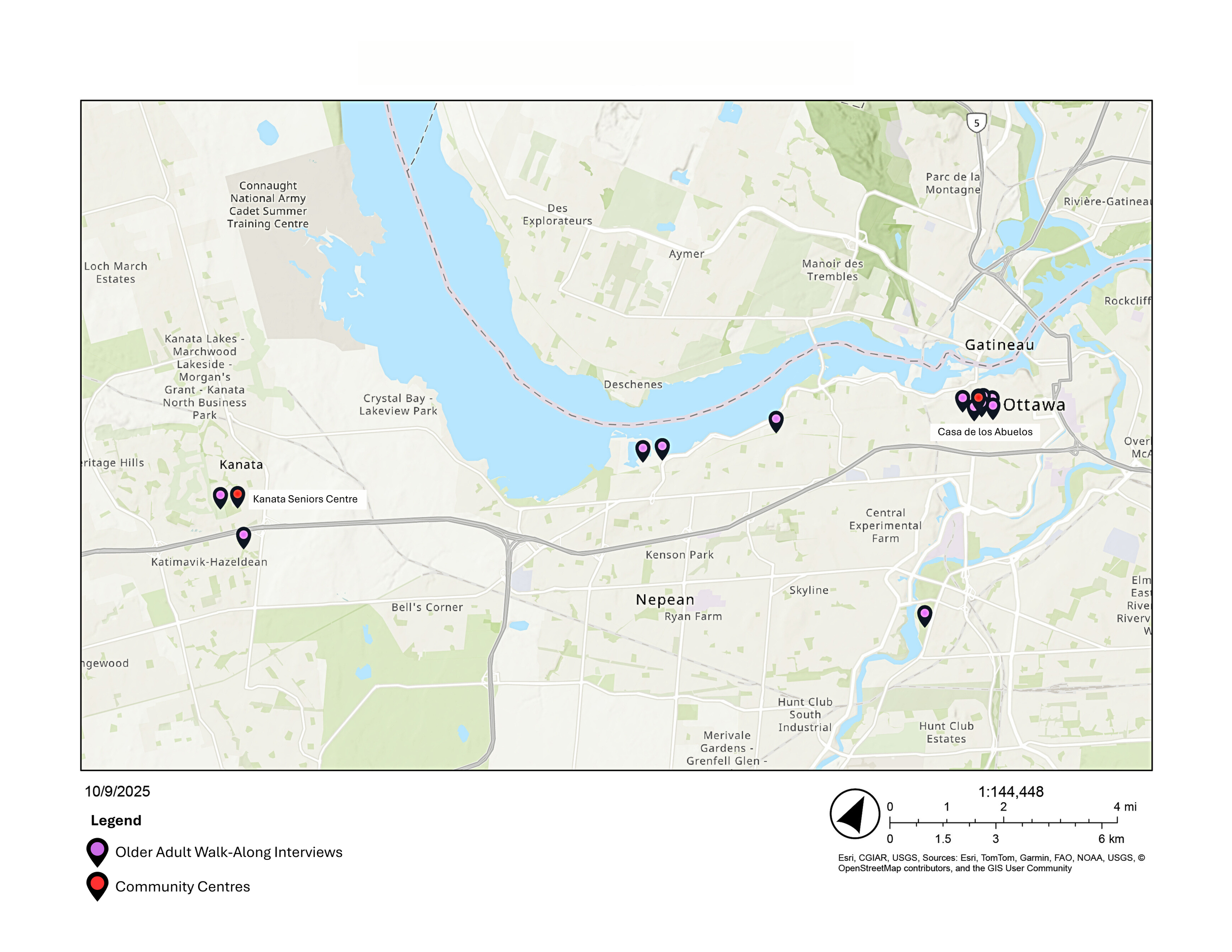 Older adult community centres in Ottawa were identified and shortlisted based on their location and neighbourhood equity index scores (identified in Ottawa’s Neighbourhood Equity Index (2024)). To ensure diversity, the recruitment sought older adults with a range of demographic characteristics, including gender, race, and immigration status, with a particular focus on capturing the voices and perspectives of older adults from underrepresented communities.